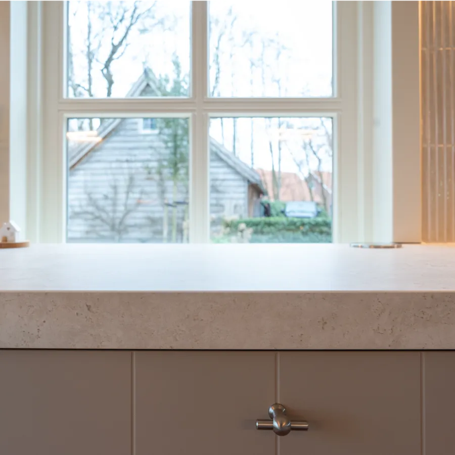 Het Dekton werkblad voegt luxe en duurzaamheid toe, met een natuurlijke steenlook die mooi aansluit bij de omgeving. De keuken is uitgerust met hoogwaardige inbouwapparatuur, waaronder een Liebherr wijnklimaatkast Vinidor, een Bora stoomoven en een strak geïntegreerde Novy Induction Undercover. Deze inductiekookplaat is volledig onzichtbaar onder het werkblad geplaatst, waardoor het werkblad strak en naadloos blijft.
