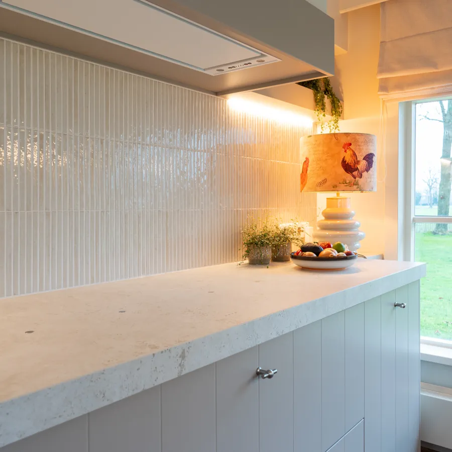 Het resultaat is een rustige, stijlvolle keuken waarin landelijk wonen en moderne techniek perfect samenkomen.